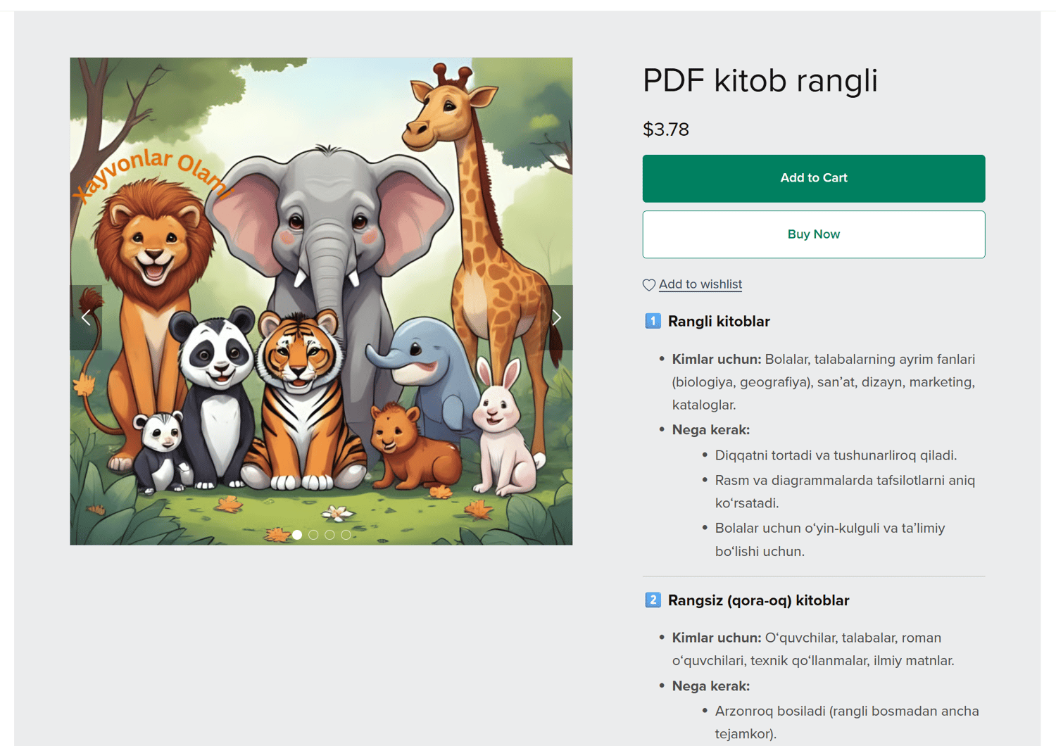 PDF kitoblar yoki boshqa mahsulotlarni onlayn sotishni bilib olasan.
